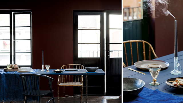 Một trong những điều mới mẻ cho dịp tới là trang trí với bảng màu tối. Kế hoạch ăn uống này từ xu hướng Dark & Light của chúng tôi kết hợp các màu bão hòa sâu bao gồm Bitter Chocolate và Sapphire Springs 1, trong hình, với ánh đèn flash bằng kim loại cho một cái nhìn sang trọng vang vọng những bức tranh của Dutch Masters. Tâm trạng, nhưng theo một cách tốt.